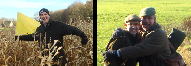 Red Gate (Fryerning Wood) put the last bird in the bag. Shame the two woodcock that flew past Dave and I were out of range. The Shoot bag was 104 for 363 shots and Paul won the pot. We’re such a close shoot, even the birds love a cuddle.