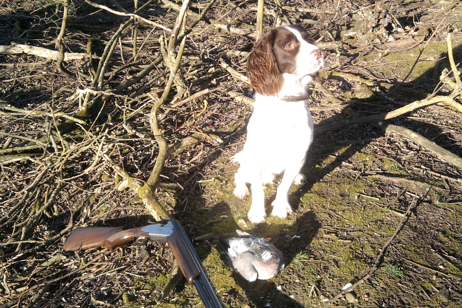 Took him over Begrums and we sat together for half an hour in the little copses around the dried pond. Couple of tellings off for making a noise, but otherwise he didn’t fidget too much. As the purpose was to give him a retrieve, I took a rather unsporting shot and dropped a Pigeon that had landed in the trees above us.