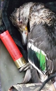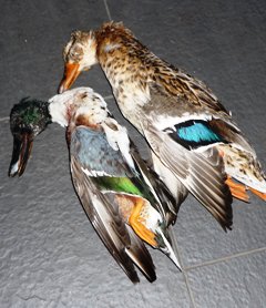 The Teal would scream along, very low and just hop up over the wall at the last minute. Very exciting, but frustrating. They were over the wall before you had a chance to raise a gun. I had more chance with the other dabbling ducks that flew higher. After missing one and a little wait, I got a male Shoveler slowing him with the first barrel and making sure with the second. Despite the rain, it was a great morning.