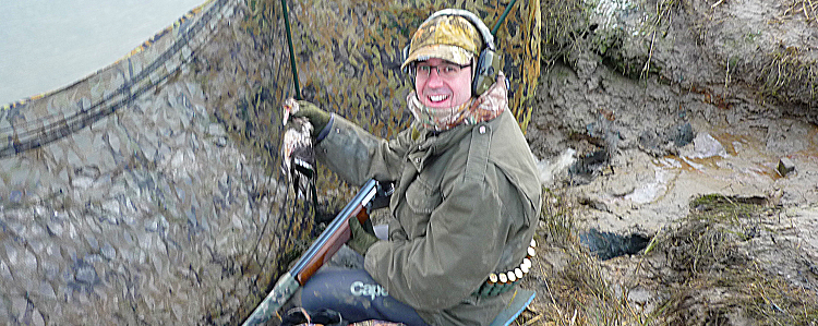 Flying with the tide a small, fast duck landed next to Eric’s decoys, but soon realised something was amiss and lifted. Eric missed and so did I but luckily I hit him with my second barrel, leaving Poppy with the muddy retrieve of my first ever Teal.